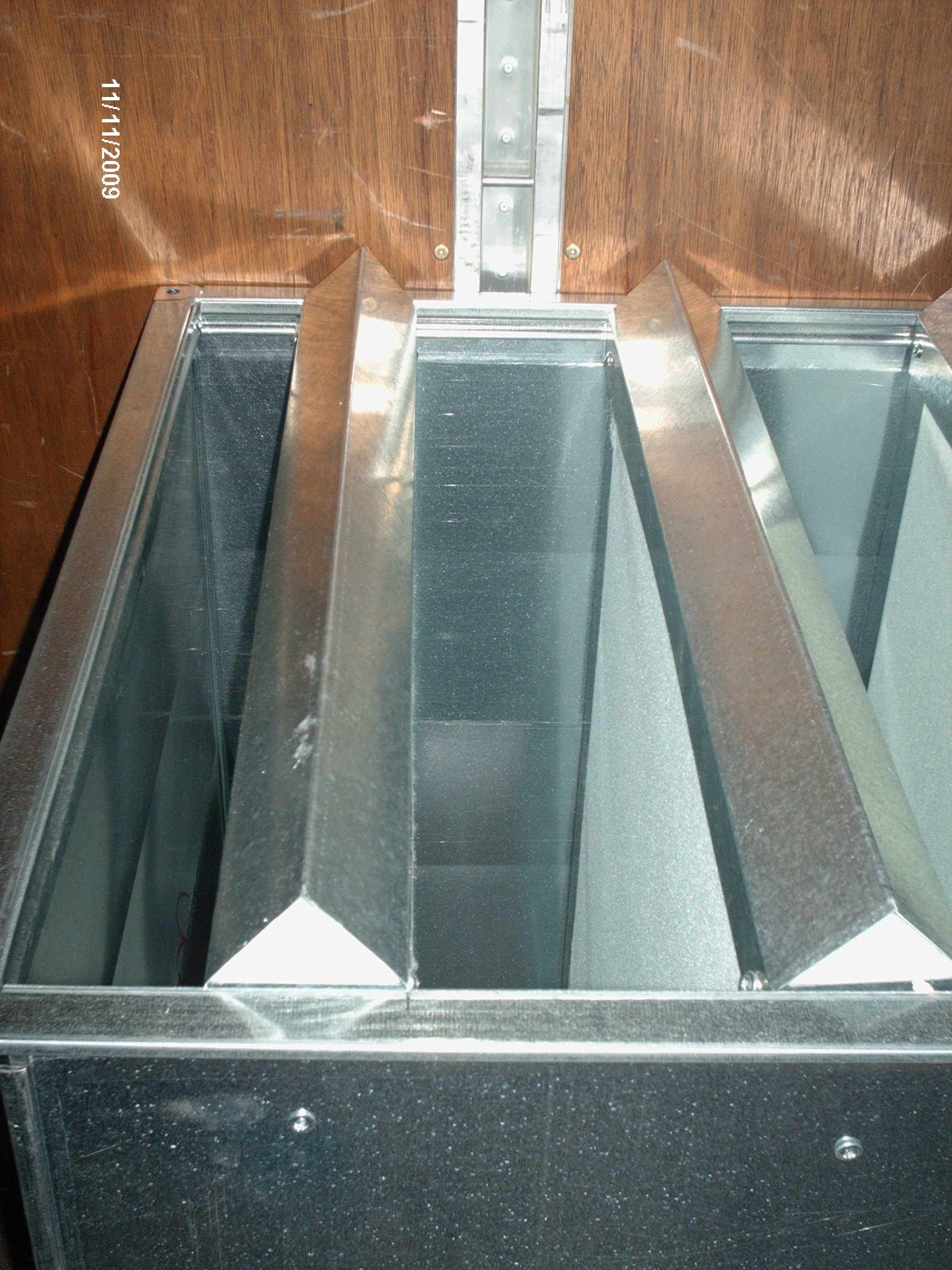 insonorizzazione di canali per l’aria, con setti acustici in fibra di poliestere, per limitare la rumorosità, dell’aria, all’interno del canale stesso.
